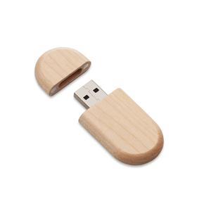 Descrição: Pen drive de bambu 4GB/8GB com formato oval, tampa imantada.