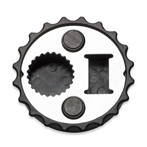 Descrição: Abridor formato tampa de garrafa com imã para geladeira, contém dois tipos de abridores de garrafa. Largura 7,7 cm Medidas aproximadas para gravação(CxL): 6,6 cm x 6,6 cm Peso aproximado(g): 50 Altura 7,7 cm