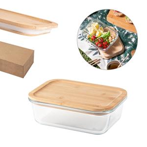 Descrição: Marmita em vidro borossilicato e tampa em bambu com vedante em silicone. Apto para o microondas e máquina de lavar, retirando a tampa. Capacidade até 1L. Food grade. Fornecida em caixa presente de papel craft.