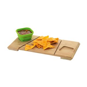 Descrição: Base de mesa em bambu com 2 potes retráteis em silicone. Fornecido em caixa de papel craft. Food grade.