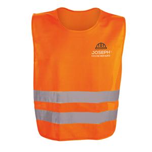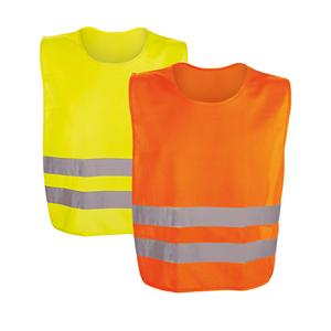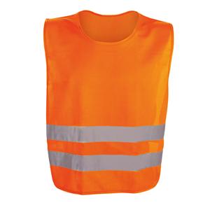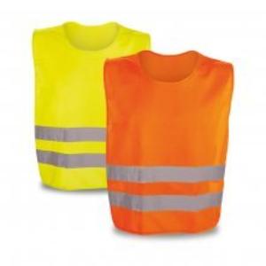 Descrição: Colete de alta visibilidade em poliéster com certificado pela norma EN 17353. Colete refletivo com 2 bandas refletoras horizontais e elásticos laterais. 540 x 620 mm