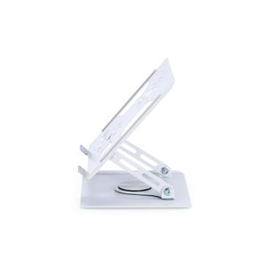 Descrição: Suporte articulado em aço com ajuste multiangular para notebooks de até 15,6 polegadas. Possui aberturas laterais e centrais que auxiliam na dissipação de calor do dispositivo, além de tiras antiderrapantes nas laterais e bordas inferiores. Largura 22 cm Medidas aproximadas para gravação(CxL): 2 cm x 10 (suporte) Peso aproximado(g): 1200 Comprimento 25 cm Espessura 3 cm Altura 4 cm