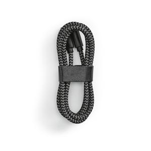 Descrição: Cabo USB-C de carregamento rápido em PET 100% reciclado. Potência de entrada e saída de 3A. Incluso correia para organizar o cabo à sua maneira. Fornecido em caixa presente de papel kraft reciclado. 1000 mm | Caixa: 70 x 19 x 120 mm
