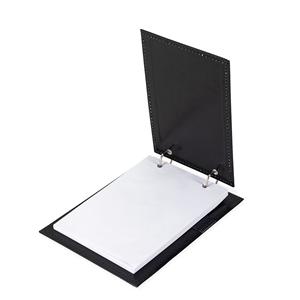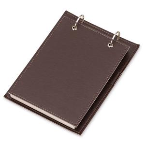 Descrição: Bloco de anotações de mesa com trilho de ferro, capa em couro sintético. Possui suporte na lateral interna para colocar caneta (não acompanha) e aproximadamente 96 folhas com área destacável. Largura 17 cm Medidas aproximadas para gravação(CxL): 17,5 cm x 14 cm Peso aproximado(g): 396 Comprimento 23,2 cm Espessura 3,8 cm