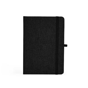 Descrição: Caderneta feita de linho com Porta-Canetas elástico, marcador de página em cetim e fita elástica para fechar. Contém aproximadamente 80 folhas brancas pautadas. Largura 12,4 cm Medidas aproximadas para gravação(CxL): 13 cm x 8 cm Peso aproximado(g): 174 Espessura 1,3 cm Altura 17,5 cm