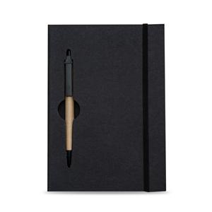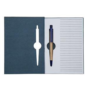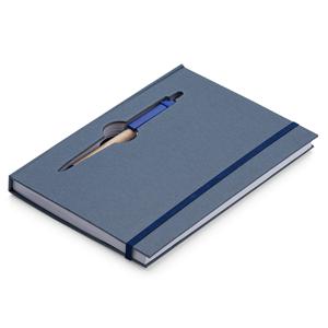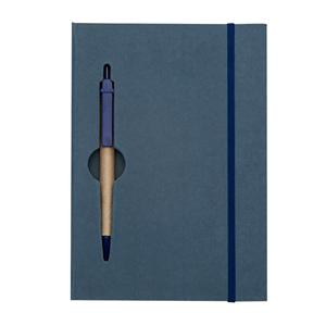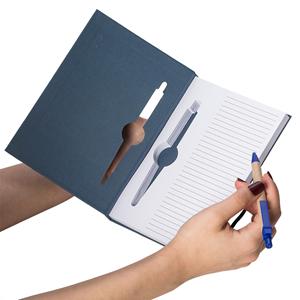 Descrição: Caderneta ecológica com capa e miolo vazados, utilizados como suporte para a caneta. Bloco com miolo de picote, elástico para lacre e caneta de papelão com detalhes plásticos, carga esferográfica na cor azul e acionamento por clique. Largura 13,5 cm Medidas aproximadas para gravação(CxL): 0,7 cm x 3,7 cm Peso aproximado(g): 249 Espessura 1,7 cm Altura 19,9 cm