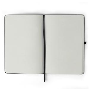 Descrição: Caderneta emborrachada com Porta-Canetas elástico em nylon, marcador de página em cetim e fita elástica de nylon para fechar. Contém aproximadamente 80 folhas pardas sem pauta. Largura 14 cm Espessura 1,5 cm Altura 21,2 cm