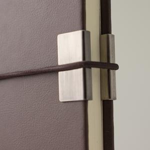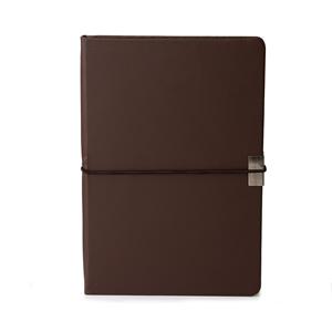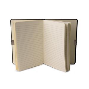 Descrição: Caderneta em couro sintético com detalhe metálico, marcador de página em cetim e fita elástica para fechar. Contém aproximadamente 96 folhas marfim com pauta. Largura 14,7 cm Medidas aproximadas para gravação(CxL): 10 cm x 13 cm Peso aproximado(g): 300 Espessura 1,8 cm Altura 21 cm