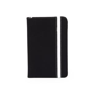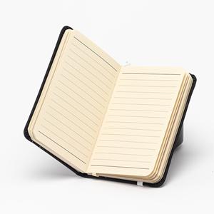 Descrição: Caderneta emborrachada com marcador de página em cetim e fita elástica de nylon para fechar. Contém aproximadamente 78 folhas marfim pautadas. Largura 10 cm Medidas aproximadas para gravação(CxL): 12 cm x 4,5 cm Peso aproximado(g): 139 Espessura 1,5 cm Altura 15 cm