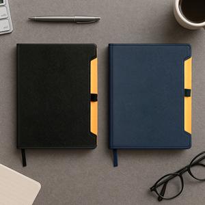 Descrição: Caderneta com capa em couro sintético, suporte elástico para caneta, marca-páginas em fita de cetim e aproximadamente 96 folhas marfim pautadas. Largura 15,9 cm Medidas aproximadas para gravação(CxL): 19 cm x 13 cm Peso aproximado(g): 290 Espessura 1,5 cm Altura 20,9 cm