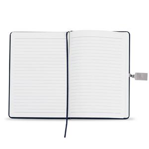 Descrição: Caderneta emborrachada com fecho metálico imantado. Possui aproximadamente 96 folhas amarelas pautadas e marca página de cetim. Medidas aproximadas para gravação(CxL): 21 cm x 13,8 cm – Fecho 1,7 cm x 2,9 cm Peso aproximado(g): 325 Tamanho total aproximado (CxL): 21,2 cm x 14,8 cm x 1,7 cm