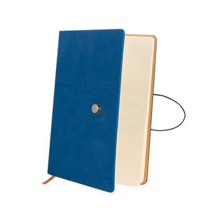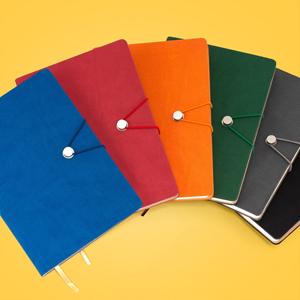 Descrição: Caderneta com fecho de pino e elástico de nylon para lacre. Capa em material sintético emborrachado, possui aproximadamente 96 folhas pardas pautadas e marca página em cetim. Medidas aproximadas para gravação(CxL): 9,7 cm x 14 cm Peso aproximado(g): 302 Tamanho total aproximado (CxL): 21 cm x 14,8 cm x 2,2 cm
