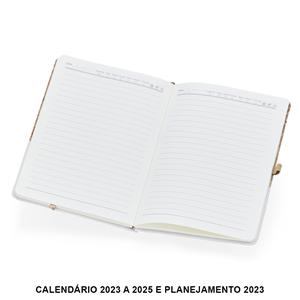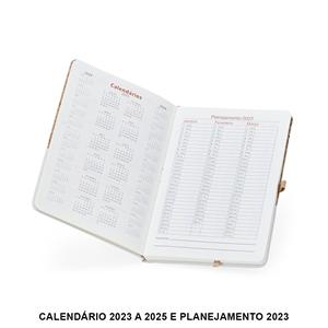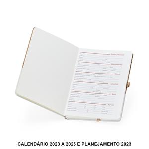 Descrição: Caderneta A5 de cortiça com detalhe em linho e suporte para caneta, contém marcador de página em cetim, página para dados pessoais, calendário, páginas de planejamento e aproximadamente 93 folhas marfim com pauta. Largura 14,3 cm Medidas aproximadas para gravação(CxL): 7 cm x 13 cm Peso aproximado(g): 270 Espessura 1,4 cm Altura 21,1 cm
