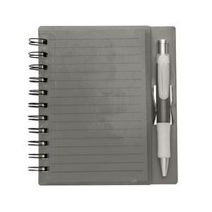 Descrição: Caderno plástico wire-o com caneta e suporte para encaixe. Caneta de Plástico com detalhe emborrachado, carga esferográfica na cor azul e acionamento por clique. Largura 14,8 cm Medidas aproximadas para gravação(CxL): 1,2 cm x 3,8 cm Peso aproximado(g): 146 Altura 16,1 cm