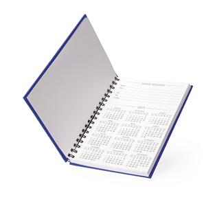 Descrição: Caderno emborrachado de frente e verso lisa com espiral preto. Possui dados pessoais, calendário de 2025 à 2027, aproximadamente 100 folhas brancas pautadas com detalhe "data" na parte superior de cada folha. Largura 17,5 cm Medidas aproximadas para gravação(CxL): 22,5 cm x 15,2 cm Peso aproximado(g): 402 Tamanho total aproximado (CxL): 23 cm x 17,5 cm x 1,6 cm Espessura 1,6 cm Altura 23 cm