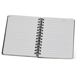 Descrição: Caderno capa dura em kraft com wire-o. Contém aproximadamente 80 folhas brancas pautadas. Largura 13,5 cm Medidas aproximadas para gravação(CxL): 17,6 cm x 11,8 cm Peso aproximado(g): 237 Espessura 2,1 cm Altura 17,7 cm