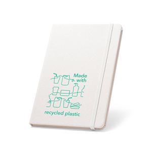 Descrição: Caderno A5 em PET reciclado com tratamento antibacteriano, segundo a certificação ISO 20743. Contém 80 folhas pautadas cor marfim, em papel proveniente de gestão florestal sustentável, elástico e fita separadora.