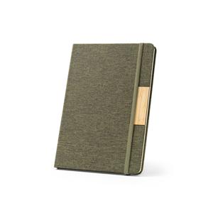 Descrição: Caderno A5 de capa dura em tecido PET 100% reciclado (rPET) e detalhe em bambu. Contém 160 páginas pautadas em papel cor marfim 100% reciclado, fita separadora e elástico para fecho do caderno. A cor e o resultado da impressão nos materiais naturais pode variar entre produtos. A cor e o resultado da impressão nos materiais naturais pode variar entre produtos. 146 x 210 mm