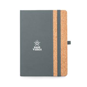 Descrição: Caderno A5 com capa dura em cortiça e PU e 192 páginas pautadas em cor marfim. Contém elástico, fita separadora e suporte para esferográfica (não inclusa). Fornecido em bolsa de TNT. 140 x 210 mm