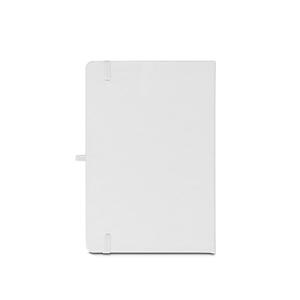Descrição: Caderno A5 de capa dura, ideal para personalização em sublimação. O caderno em poliéster 100% reciclado (rPET) 300D tem 160 páginas pautadas em papel 100% reciclado cor de marfim, uma fita separadora, um suporte para esferográfica (não inclusa) e um elástico para fecho do bloco. 143 x 211 mm