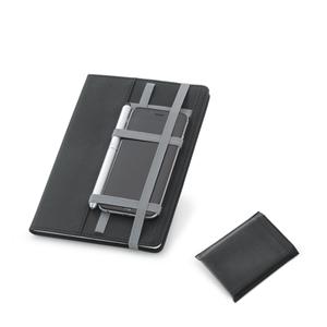 Descrição: Caderno A5 de capa dura em Couro Sintético, com 160 páginas lisas. Contém elásticos com capacidade para suportar caneta esferográfica (não inclusa), celular e cartões e um elástico para fechar o bloco de notas. Fornecido em bolsa de TNT. 150 x 210 mm | Bolsa: 185 x 240 mm