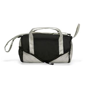 Descrição: Bolsa esportiva em poliéster 420D resistente à água, com fechamento em zíper e capacidade de 6 litros. Quando dobrada, mantém formato arredondado com bolso telado e uma alça de mão para transporte. Aberta, possui dois bolsos externos: um frontal aberto e outro lateral em tela de nylon com elástico. Conta ainda com duas alças laterais fixas e uma alça transversal ajustável. Largura 28 cm Medidas aproximadas para gravação(CxL): 8 cm x 12 cm (bolsa aberta) - 12 cm x 12 cm (bolsa dobrada) Peso aproximado(g): 123 Profundidade 16 cm Altura 16 cm