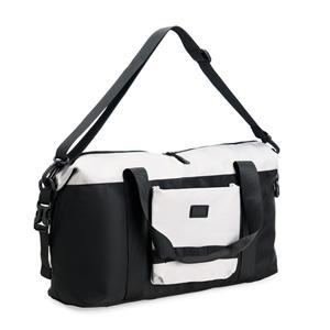 Descrição: Bolsa esportiva confeccionada em poliéster e malha, com dois pés emborrachados costurados na parte inferior e capacidade máxima de 26 litros. Possui dois bolsos internos, sendo um com fechamento em zíper e outro com tira de velcro. Apresenta outros dois bolsos externos, incluindo um com encaixe em malas de viagem. Conta ainda com alças de mão com suporte de juntura em velcro e um alça transversal removível. Largura 59 cm Medidas aproximadas para gravação(CxL): 7 cm x 18 cm Peso aproximado(g): 408 Profundidade 16 cm Altura 30 cm