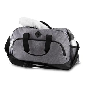 Descrição: Bolsa esportiva de poliéster. Possui bolso frontal, bolso lateral de malha e bolso grande superior. Alça de mão com pegador cinza de velcro e alça transversal ajustável. Largura 48 cm Medidas aproximadas para gravação(CxL): 14,5 cm x 35 cm Peso aproximado(g): 389 Profundidade 24 cm Altura 26 cm