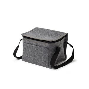 Descrição: Bolsa térmica feita em feltro com capacidade para 6 litros, possui revestimento térmico, bolso frontal e alças para as mãos. Largura 19 cm Medidas aproximadas para gravação(CxL): 6,5 cm x 13 cm Peso aproximado(g): 126 Profundidade 15 cm Altura 13 cm