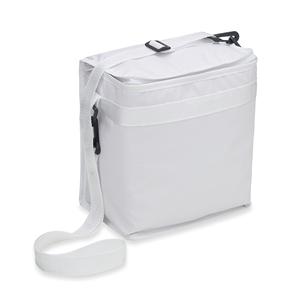 Descrição: Bolsa térmica de bagum sintético com capacidade de 10 litros, contém revestimento interno em polietileno atóxico soldado (não vaza), bolso sintético externo de matelassê e alça tiracolo ajustável de polipropileno. Largura 23,5 cm Medidas aproximadas para gravação(CxL): 17 cm x 17 cm Peso aproximado(g): 204 Profundidade 17cm Altura 26 cm