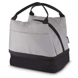 Descrição: Bolsa térmica confeccionada em rPET impermeável e capacidade total de até 5 litros, distribuída entre dois compartimentos com fechamento em zíper e revestimento térmico em folha de alumínio. Conta ainda com bolso frontal e par de alças em nylon para transporte. Largura 25 cm Medidas aproximadas para gravação(CxL): 7 cm x 18 cm Peso aproximado(g): 125 Profundidade 15 cm Altura 20 cm