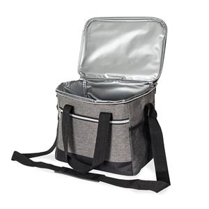 Descrição: Bolsa térmica confeccionada em poliéster resistente à água e capacidade de até 15 litros. Possui revestimento interno em PEVA antivazamento, que ajuda a conservar a temperatura de alimentos e bebidas por mais tempo. Conta com bolso frontal com zíper, dois bolsos laterais em tela de nylon, alças de mão e alça transversal fixa, regulável e com apoio para ombro. Largura 26 cm Medidas aproximadas para gravação(CxL): 10 cm x 22 cm Peso aproximado(g): 350 Profundidade 20 cm Altura 24 cm