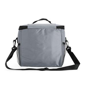 Descrição: Bolsa térmica em Oxford resistente à água e com capacidade de até 11 litros. Seu revestimento interno em alumínio permite a conservação de temperatura de alimentos e bebidas por mais tempo. Possui também um bolso frontal e mais um par de bolsos laterais em tela de nylon, além de uma alça fixa na tampa e outra transversal. Largura 25 cm Medidas aproximadas para gravação(CxL): 12 cm x 20 cm Peso aproximado(g): 231 Profundidade 15,5 cm Altura 22 cm