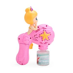 Descrição: Brinquedo lançador de bolhas de sabão feito em plástico com o formato de sereia. Ao acionar o gatilho, acende luzes de LED e dispara múltiplas bolhas. Funciona com quatro pilhas AA (não inclusas) e acompanha um frasco líquido para bolhas. Largura 13,7 cm Medidas aproximadas para gravação(CxL): 2 cm x 8 cm Peso aproximado(g): 147 Espessura 7,7 cm Altura 22,1 cm