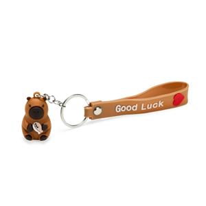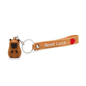 Descrição: Chaveiro com textura emborrachada e em formato de capivara, acompanhado de argola metálica e correia plástica flexível. Largura 3 cm Medidas aproximadas para gravação(CxL): 1 cm x 8 cm Peso aproximado(g): 22 Espessura 3 cm Altura 21 cm