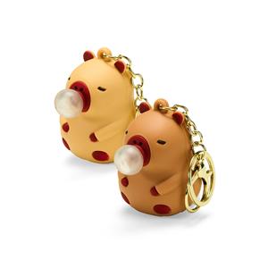 Descrição: Chaveiro em plástico apertável no formato de capivara. Acompanha argola e mosquetão metálicos. Largura 4 cm Medidas aproximadas para gravação(CxL): 3 cm x 3 cm Peso aproximado(g): 30 Espessura 4,9 cm Altura 12,5 cm
