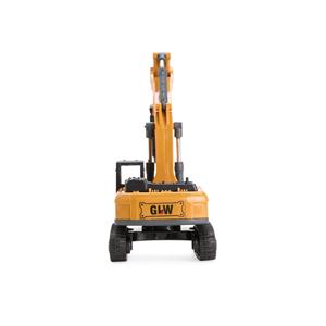 Descrição: Escavadeira em miniatura com estrutura em plástico e metal, além de esteira emborrachada. Possui lança e garra com articulação manual e cabine giratória em 360 graus. Largura 5 cm Peso aproximado(g): 98 Comprimento 14,8cm Altura 8,7 cm