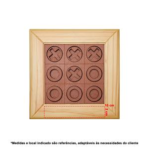 Descrição: Uma verdadeira obra-prima ecológica, nosso jogo da velha combina entretenimento e um compromisso genuíno com a preservação ambiental. Cada peça é habilmente esculpida em madeira proveniente de reflorestamento, selecionada com dedicação e respeito pela natureza. Com peças e tabuleiro em recouro e acabamento em veludo, o jogo da velha combina diversão e elegância, promovendo a interação entre as pessoas e ainda adiciona sofisticação e charme a qualquer ambiente. Descubra a perfeita combinação entre entretenimento e decoração sofisticada. Permita-se mergulhar nessa experiência refinada e transforme seus momentos de lazer em verdadeiras obras de arte interativas. Largura 23,2 cm Medidas aproximadas para gravação(CxL): 2 cm x 15 cm Peso aproximado(g): 703 Profundidade 23,2 cm Espessura 2,7 cm