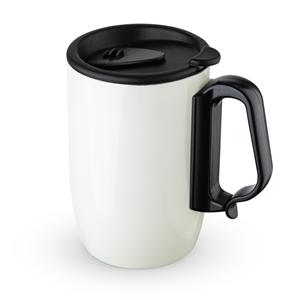 Descrição: Caneca 350ml parede dupla em Inox, com pegador de plástico, contém tampa com compartimento que ao deslizar, pode ser aberto para beber e base com EVA antiderrapante. Largura 12,5 cm Medidas aproximadas para gravação(CxL): 8 cm x 7 cm Peso aproximado(g): 181 Circunferência 24,7 cm Altura 12,4 cm