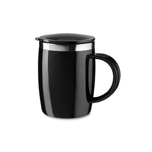 Descrição: Caneca plástica com área interna de inox, capacidade de 400ml. A caneca possui tampa de encaixe com borracha de vedação e “tapete” antiderrapante na área inferior. Largura 13 cm Peso aproximado(g): 199 Altura 12,5 cm