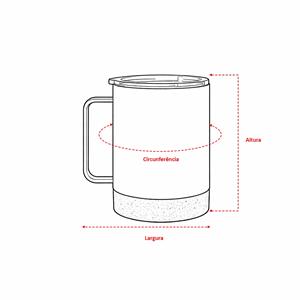 Descrição: Caneca térmica em inox com pintura eletrostática, fundo em cortiça e capacidade para até 330ml. Apresenta estrutura de parede dupla e vedação a vácuo, que ajuda a conservar a temperatura das bebidas por mais tempo. Possui tampa plástica com trava de segurança no bocal. Largura 11,9 cm Medidas aproximadas para gravação(CxL): 8 cm x 8 cm Peso aproximado(g): 302 Circunferência 27,7 cm Altura 11,8 cm