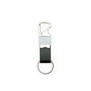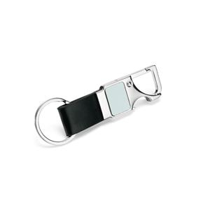 Descrição: Chaveiro em metal com tira em couro sintético. Possui mosquetão e pode ser utilizado como um abridor de garrafas. Largura 3,2 cm Medidas aproximadas para gravação(CxL): 2 cm x 1,5 cm Peso aproximado(g): 29 Espessura 0,7 cm Altura 10,1 cm