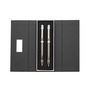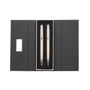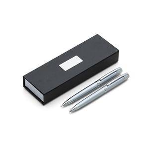 Descrição: Conjunto caneta e lapiseira em estojo de cartonagem com placa central para personalização. Clip metal com dois anéis em relevo, anel centralizado e dois anéis em relevo na ponteira e acionam por giro. Estojo revestida com espuma na parte interna. Largura 6,5 cm Medidas aproximadas para gravação(CxL): Caneta/Lapiseira 4,2 cm x 1 cm – Estojo 4,1 cm x 1,6 cm Peso aproximado(g): 129 Comprimento 18 cm