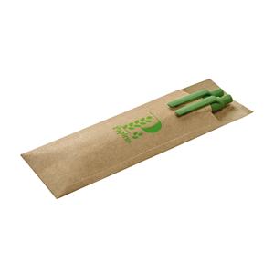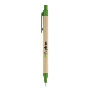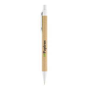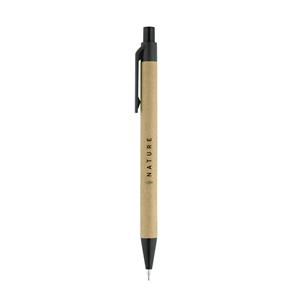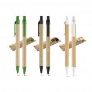 Descrição: Conjunto de esferográfica e lapiseira em papel craft com clipe e ponteira de plástico. A lapiseira é de 0.5 mm. Fornecido com uma bolsa em cartão.