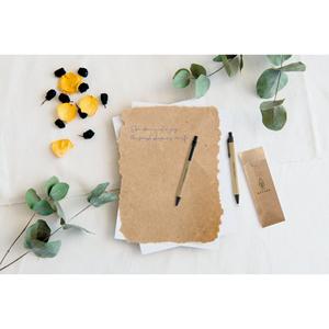 Conjunto de Caneta Esferográfica com Escrita em Azul e Lapiseira em Papel Kraft