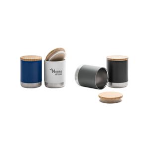 Descrição: Copo em aço inox com parede dupla isolada a vácuo, parede interna revestida de cobre e tampa em bambu com vedante de silicone para proteção extra. Tem capacidade até 370 ml e mantém as bebidas quentes por 5 h e frias por 24 h. Contém revestimento em pó que lhe confere mais durabilidade e resistência. Food grade. Fornecido em caixa presente de papel craft.
