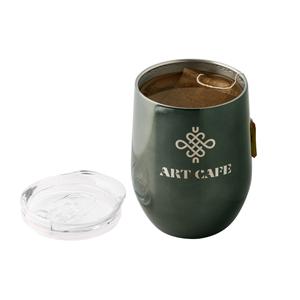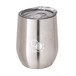 Descrição: Copo de viagem em aço inox com corpo duplo e tampa deslizante. Capacidade até 400 ml. Food grade. Fornecida em caixa. 88 x 112 mm