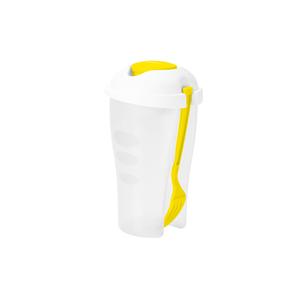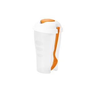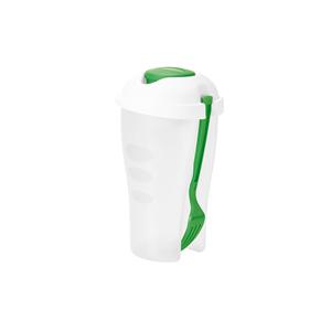 Descrição: Copo para salada em PP com garfo e molheira. Capacidade até 850 mL. Apto para micro-ondas, retirando a tampa. Certificação EU Food Grade. ø110 x 190 mm