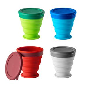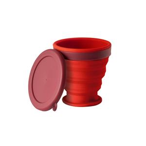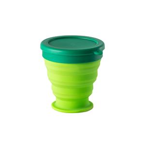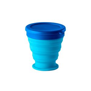 Descrição: Copo de viagem dobrável em silicone com tampa em PP. Contém uma argola na base que serve como pega ou para pendurar. Capacidade até 240 mL. Certificação EU Food Grade. ø57 x 87 x 81 mm
