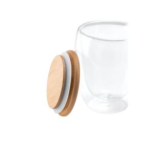 Descrição: Copo de viagem em vidro borossilicato com parede dupla isolada a ar e tampa em bambu. Copo com capacidade até 350 ml, ideal para líquidos frios ou quentes, tendo uma tampa com isolante em silicone que facilita o transporte do copo evitando respingo. Apto para ir ao microondas e à máquina de lavar, retirando a tampa. Food grade.